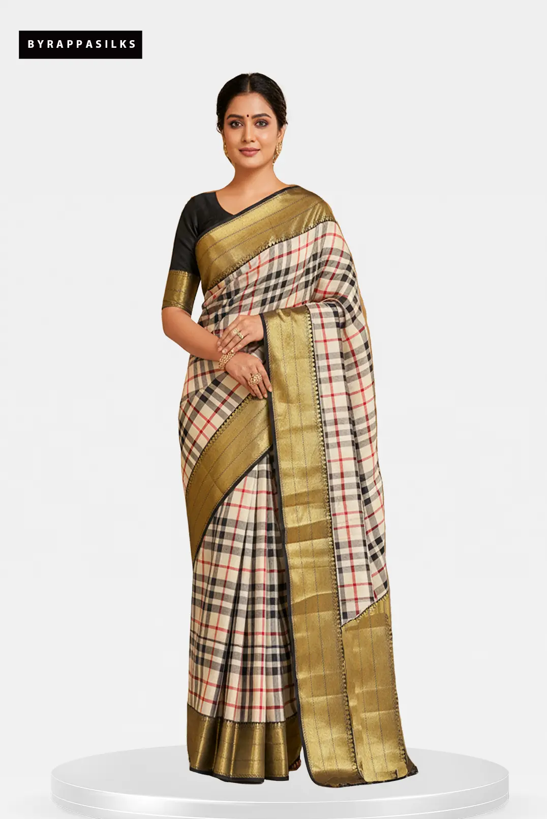 Pure Kanchipuram Burberry Checks Saree QS310215