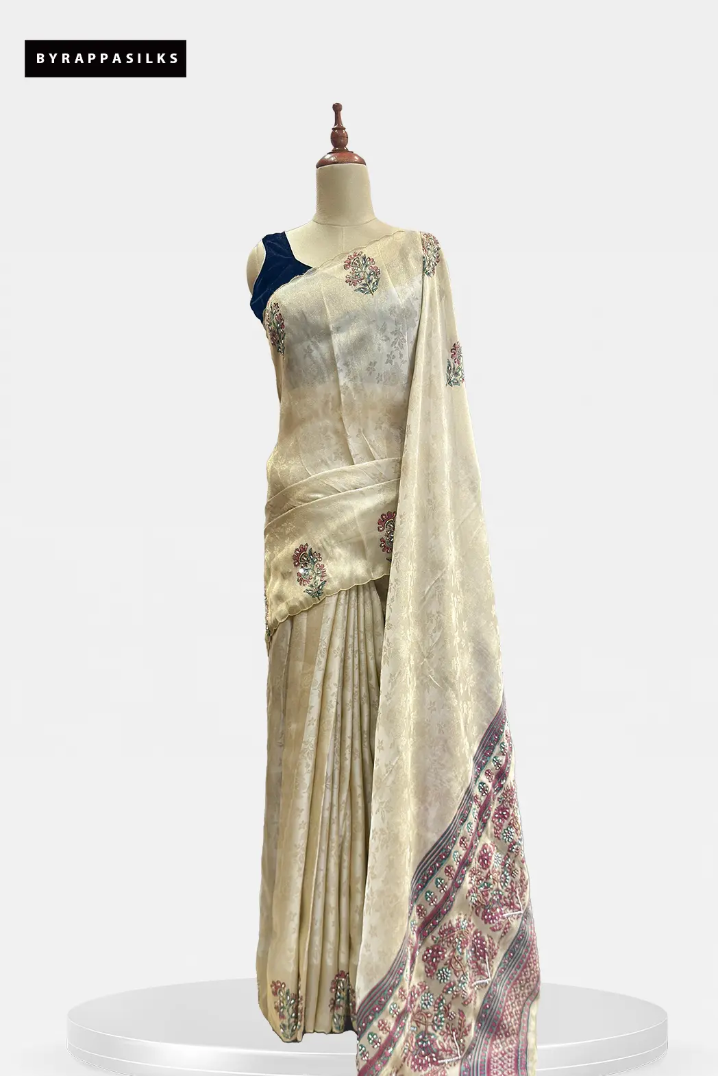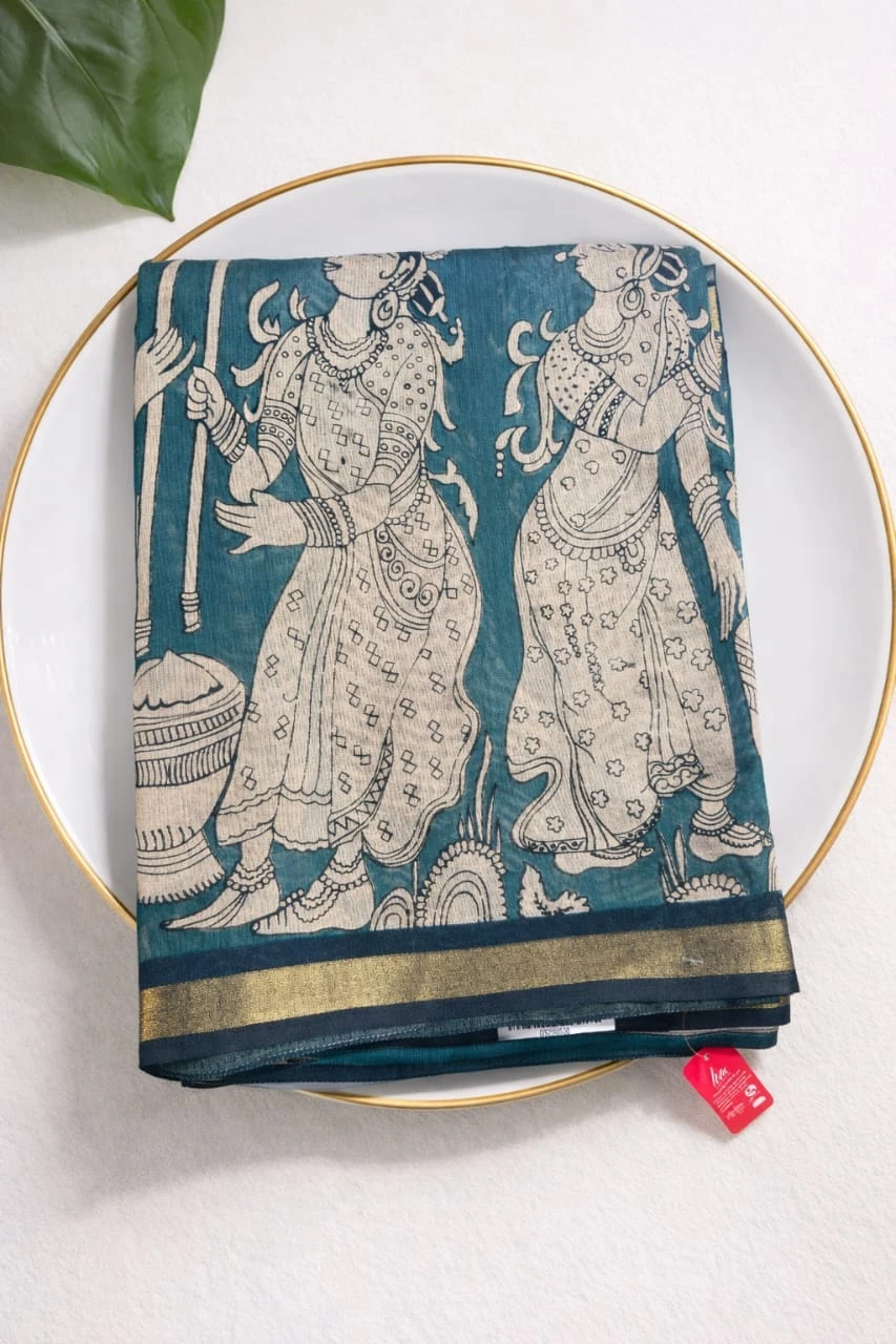 Daily Wear Linen Saree White & Teal Blue QS303120