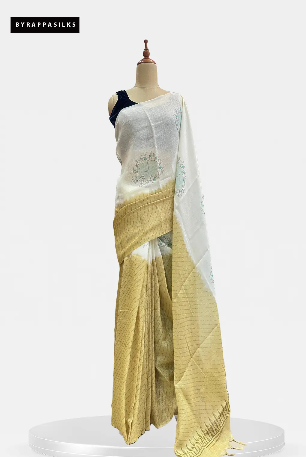 Daily Wear Linen Saree White & Mustard Yellow₹1450₹1595