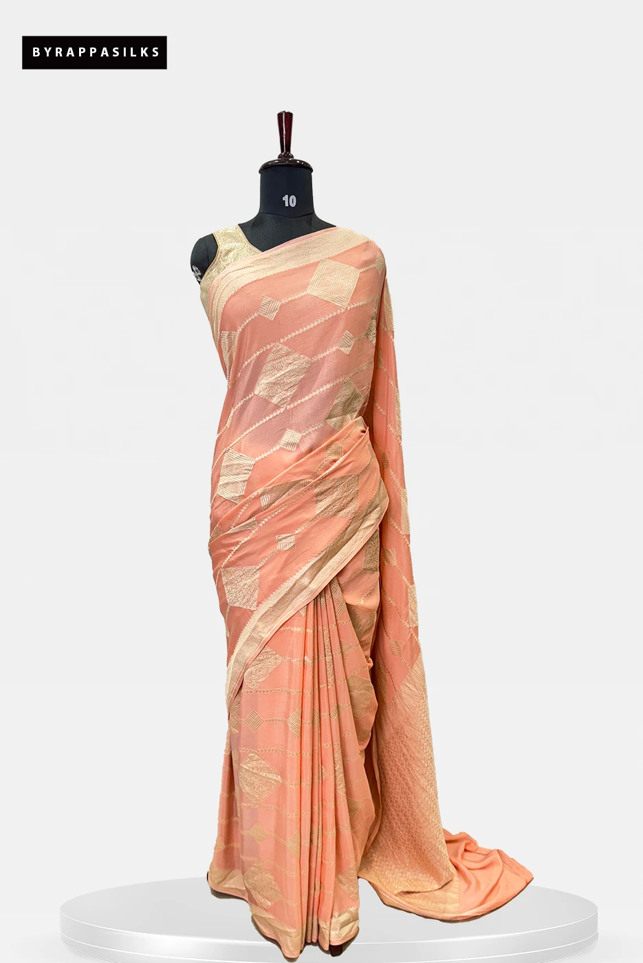 Kadhi Georgette Crape Peach & Gold Saree QS208551