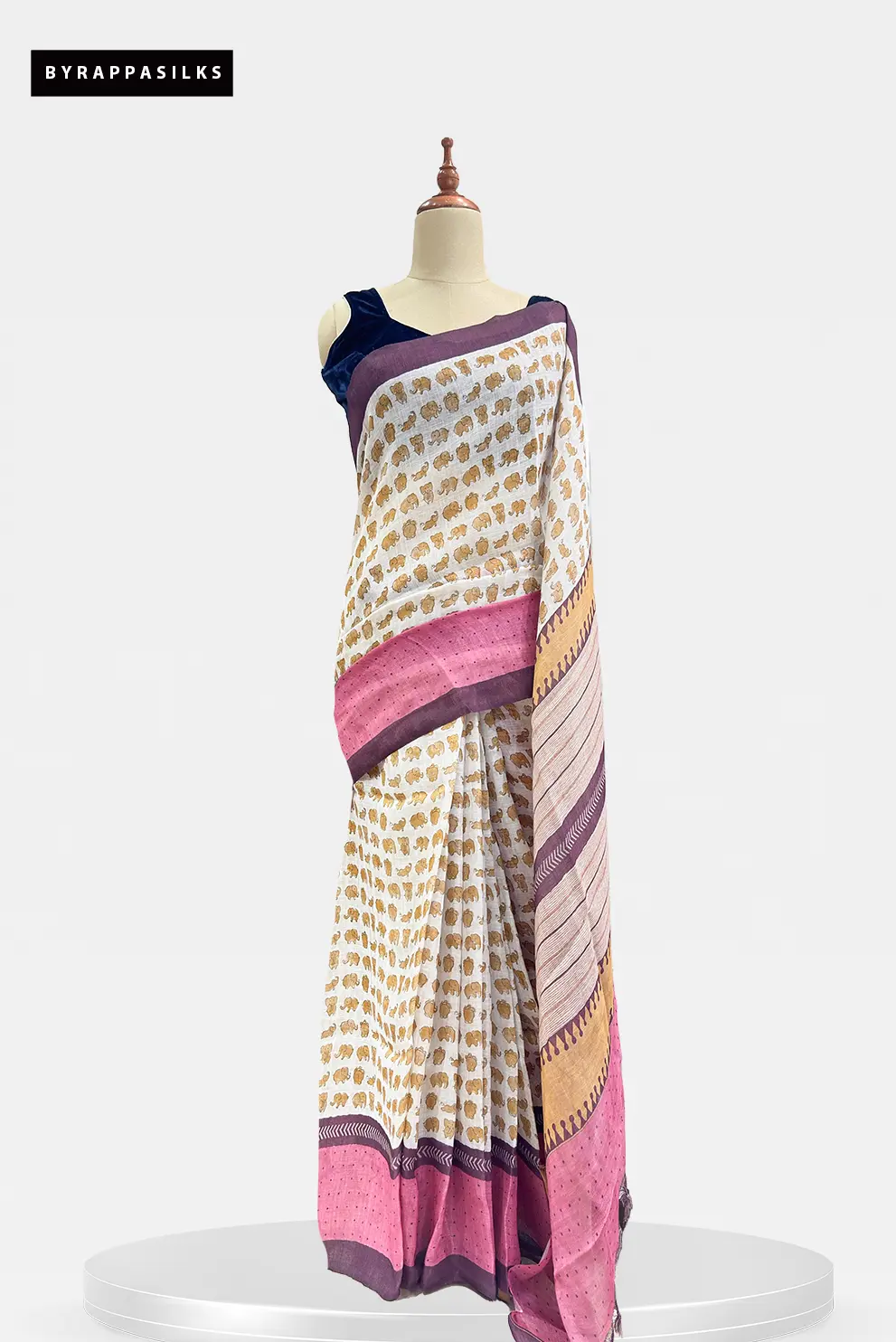 Linen Cotton Saree Elephant Print Mustard₹1550₹1695