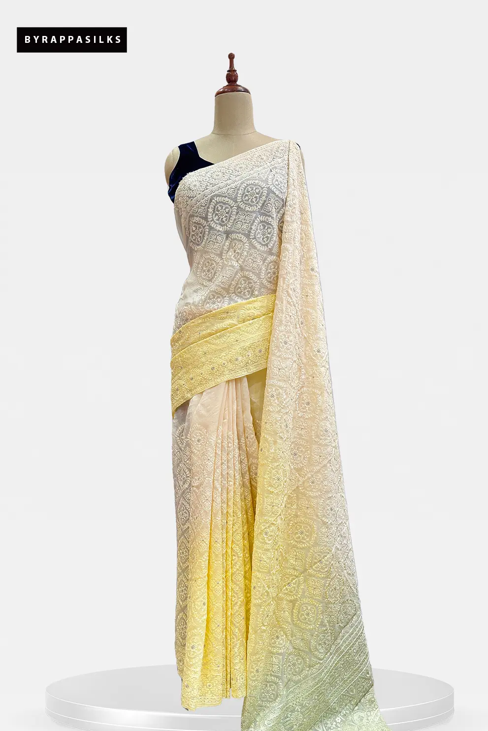 Pure Organza Chikankari Floral Cream To Lemon Yellow₹9131₹9995