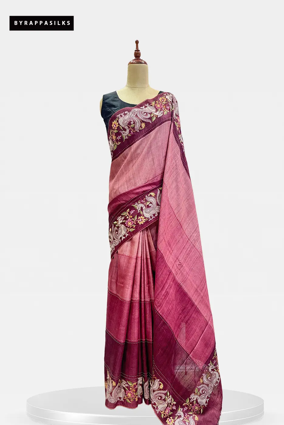 Pure Tussar Saree With Kantha Work Pink & Maroon₹15525₹16995