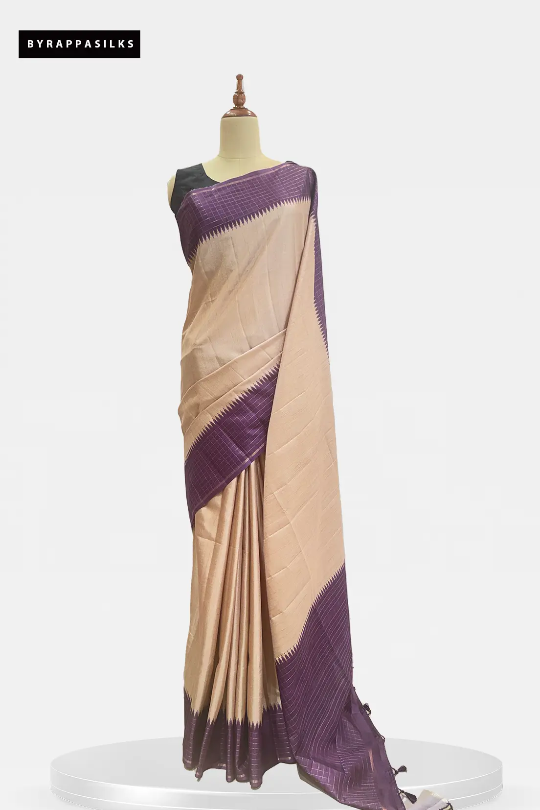 Semi Tussar Saree Beige & Dark Dusty Purple Border QS299451