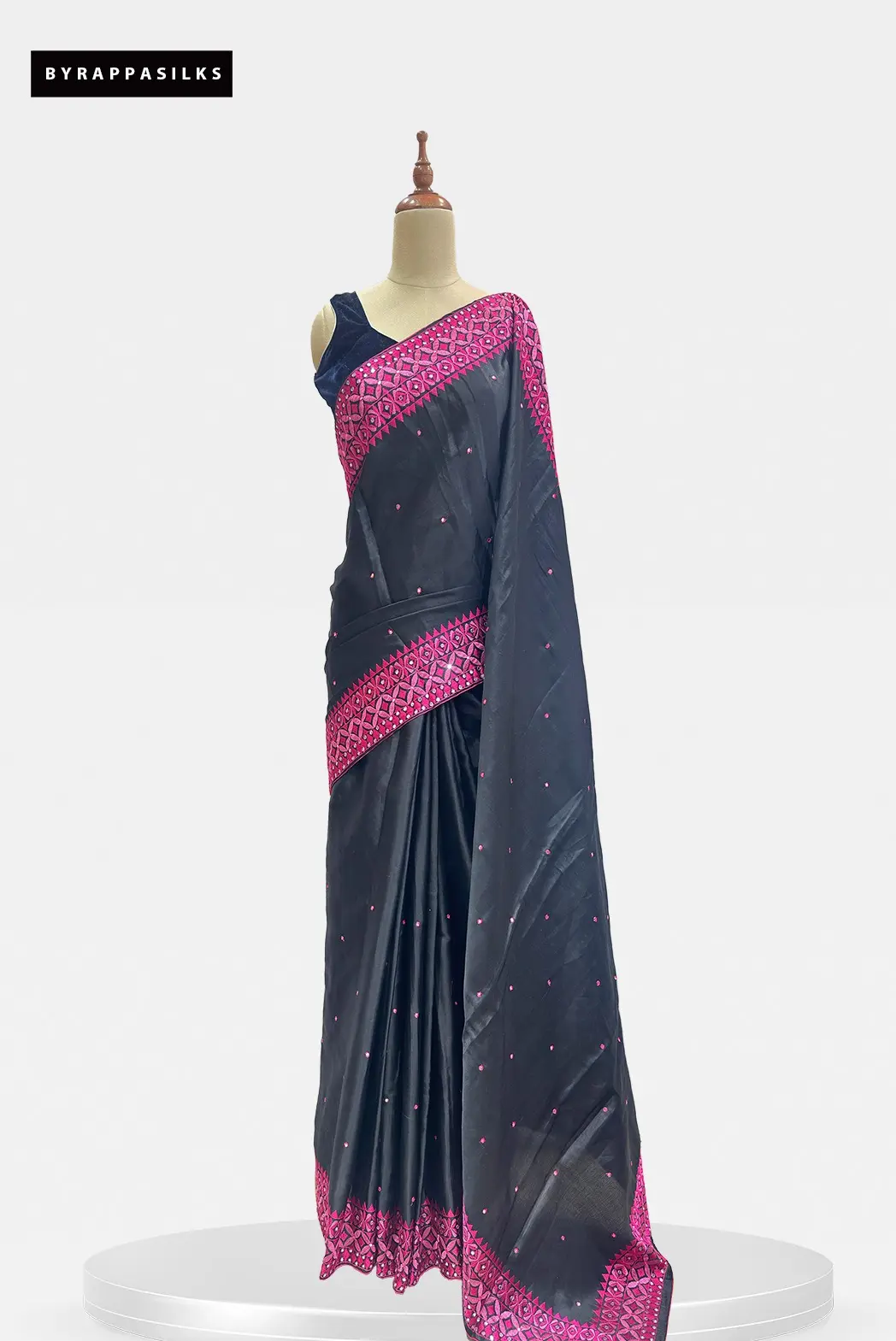 Semi Tussar Saree Black With Hot Pink Border₹3650₹3995