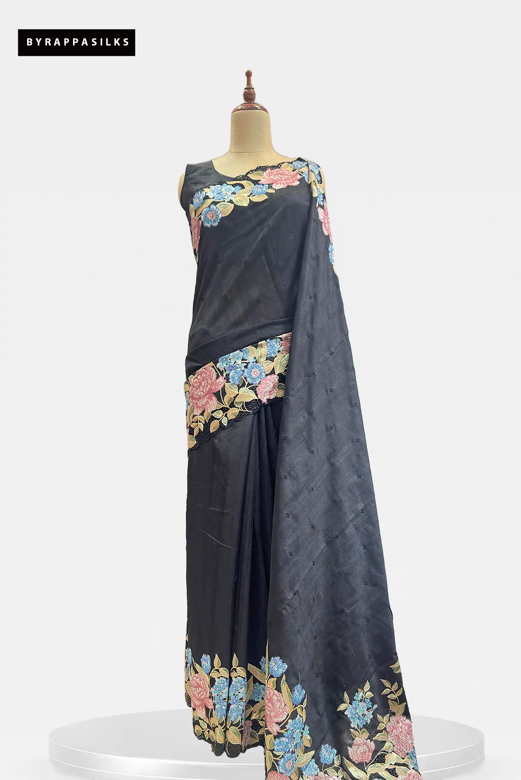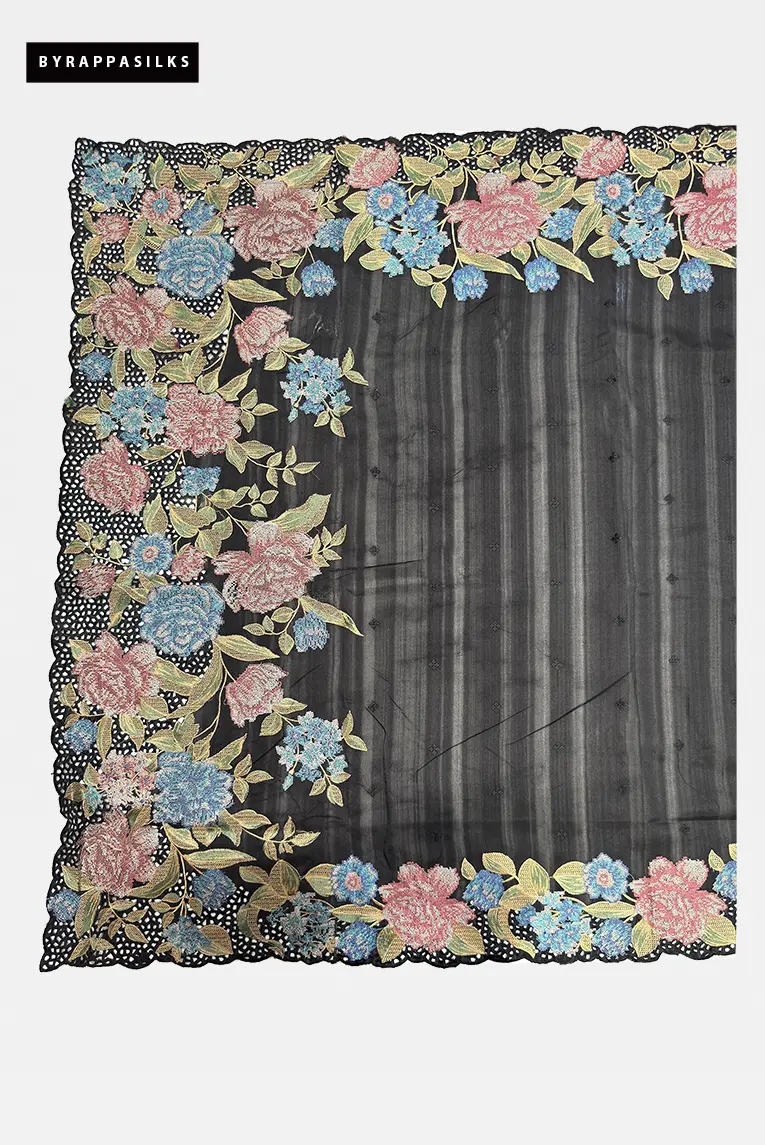 Semi Tussar Saree Floral Embroidery Border Black Colour₹5020₹5495
