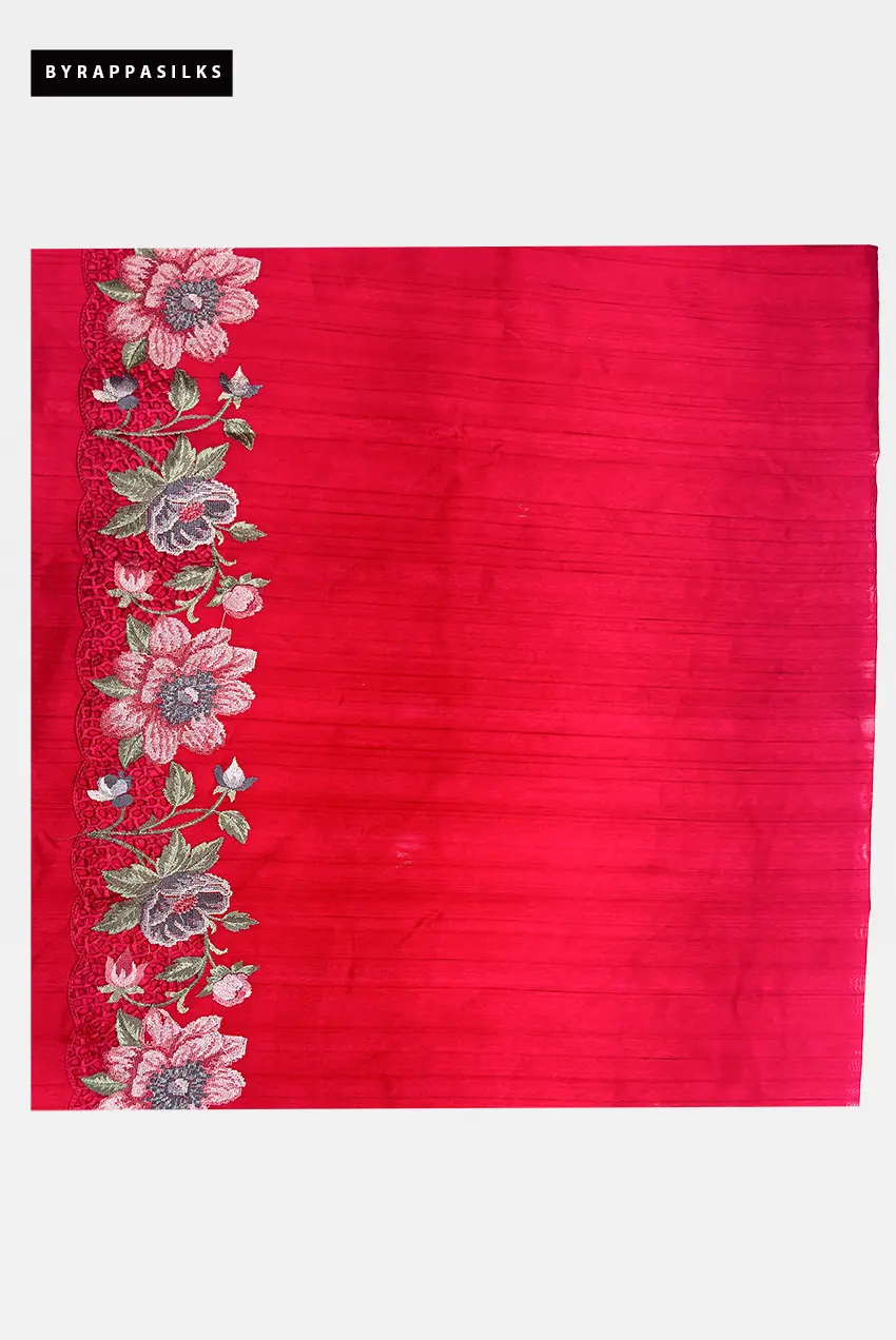 Semi Tussar Saree Floral Embroidery Border Pink Colour₹4015₹4395