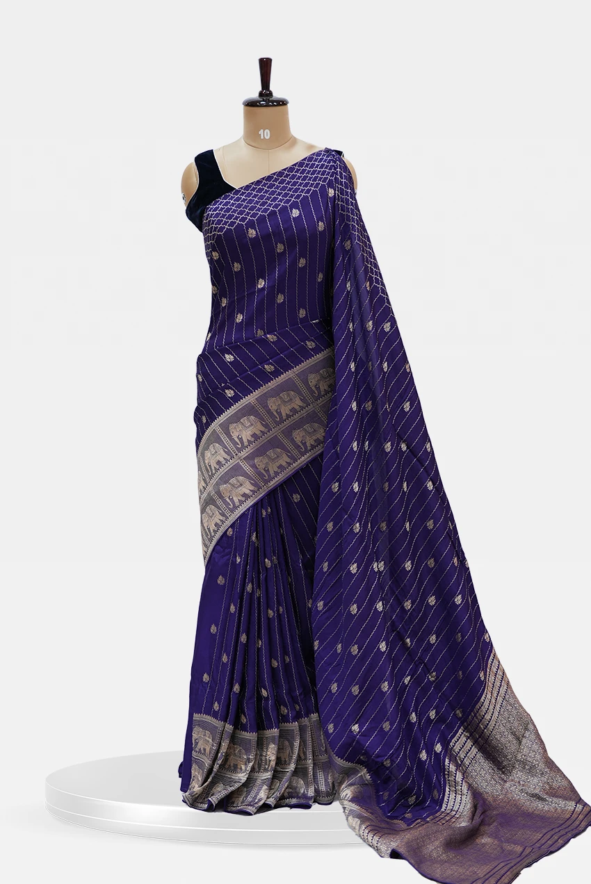 Banarasi Saree Intricate Gold Zari Jaal & Meenakari Accents Purple₹3375₹3695