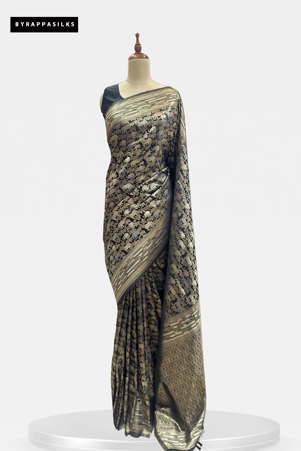 Colour :- Fancy Banarasi Saree Black Elephant Motif