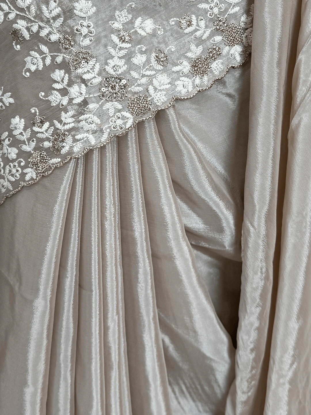 Fancy Designer Saree with 2 Blouse - Light Beige Colour - QS219661