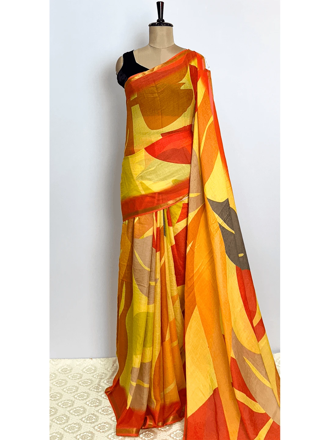 Fancy Printed (Aditya Birla Fabric saree)- Yellow & Red Colour - QS213549