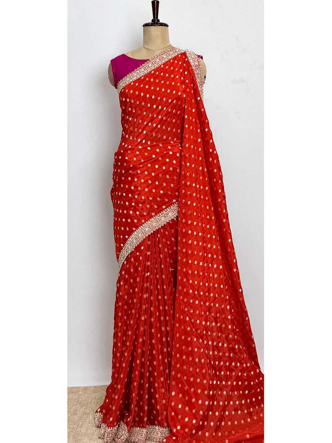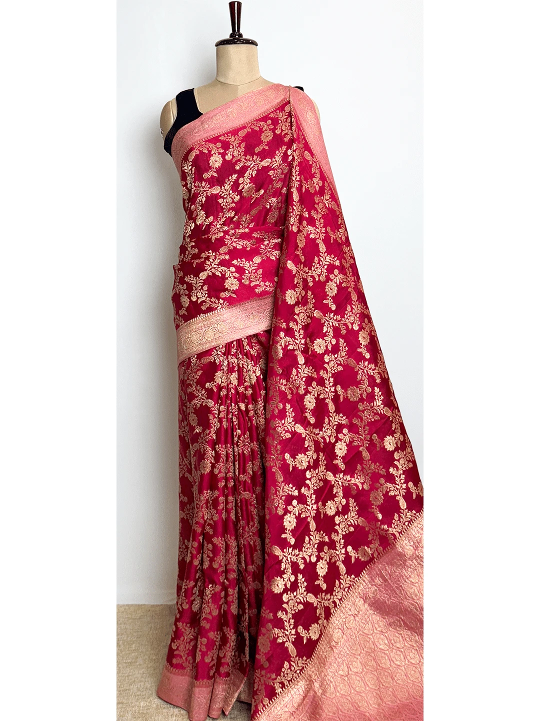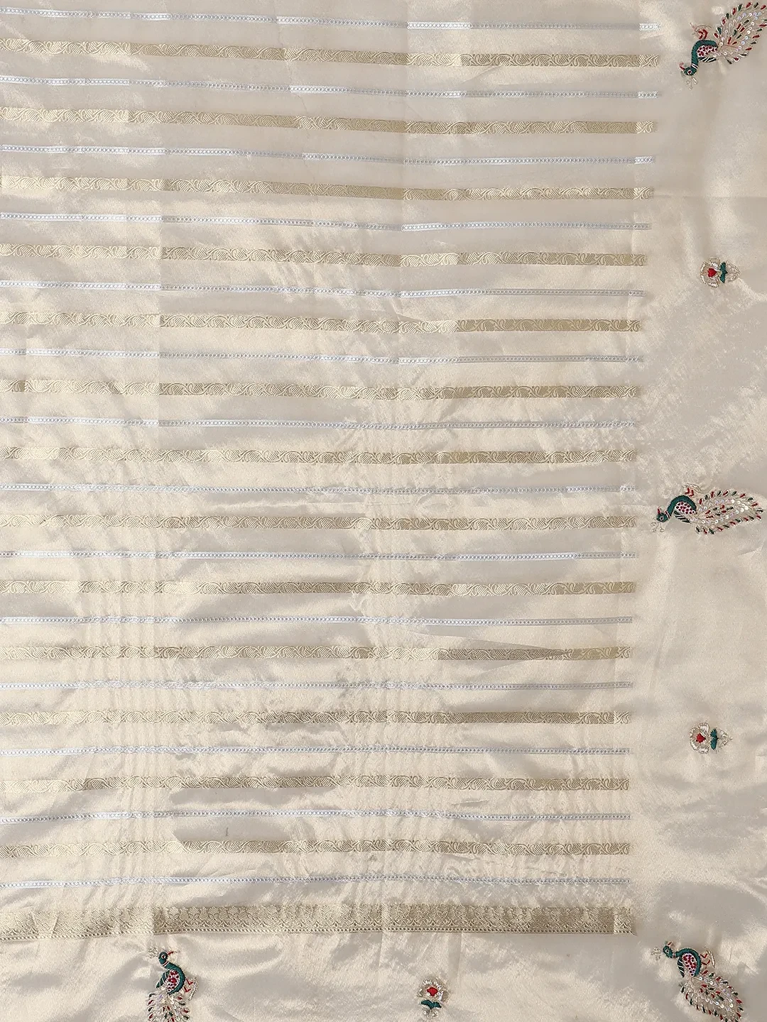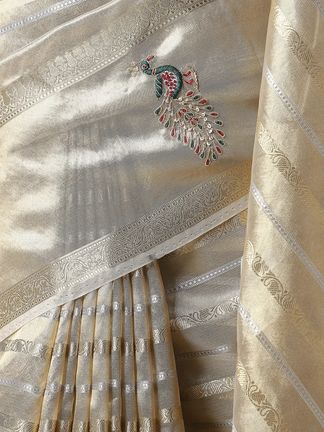 Fancy Printed Banarasi Saree -Cream Gold Colour QI202556