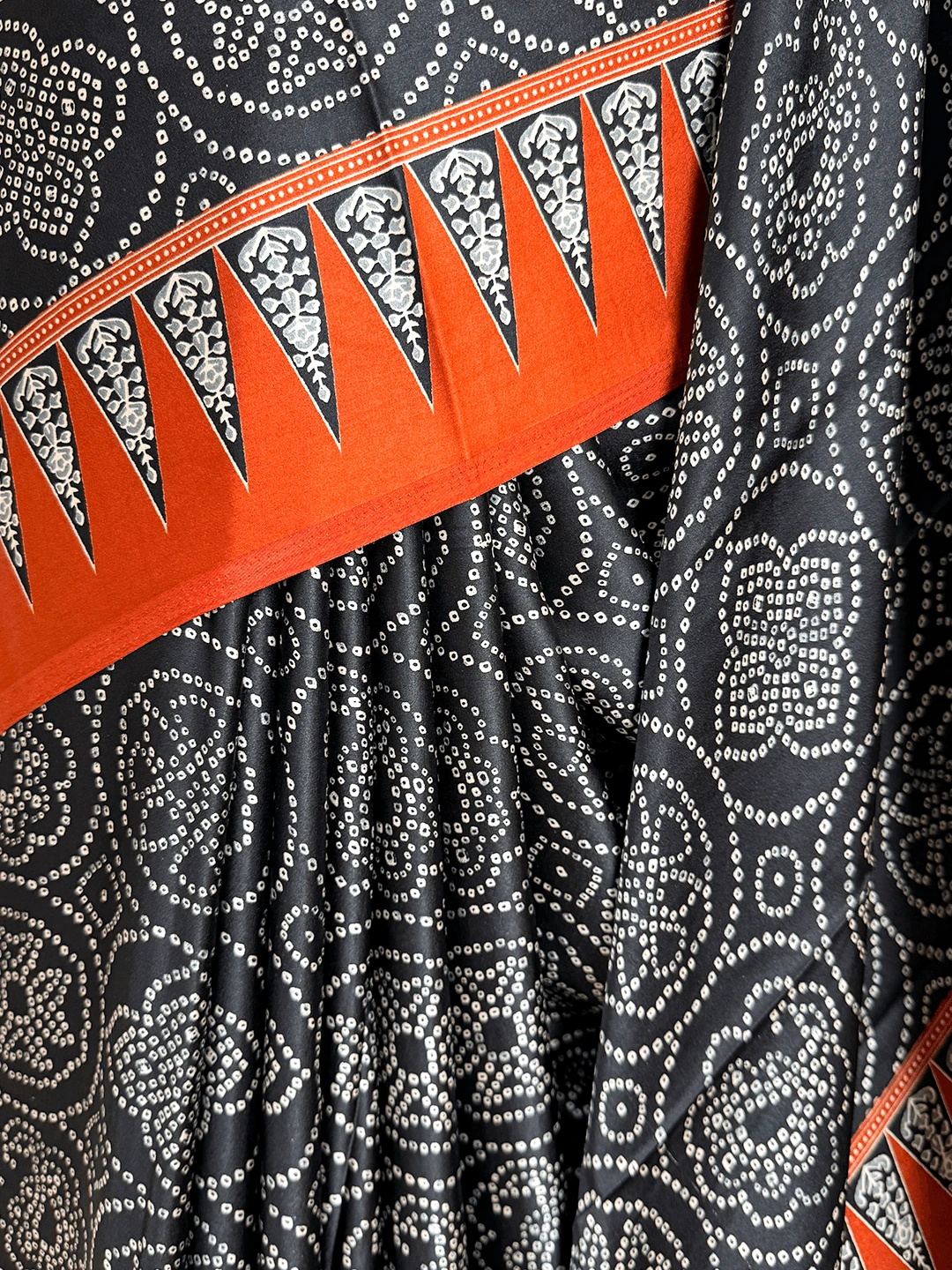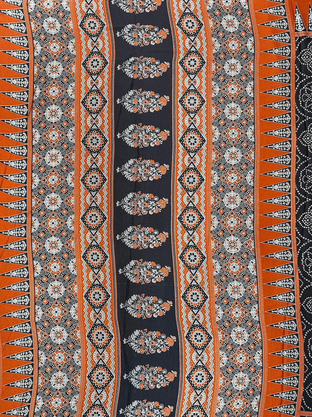 Fancy Printed Saree - Black With Orange Border - QS215509