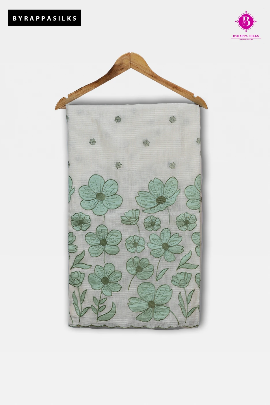 Colour :- White Organza Saree with Green Floral Embroidery