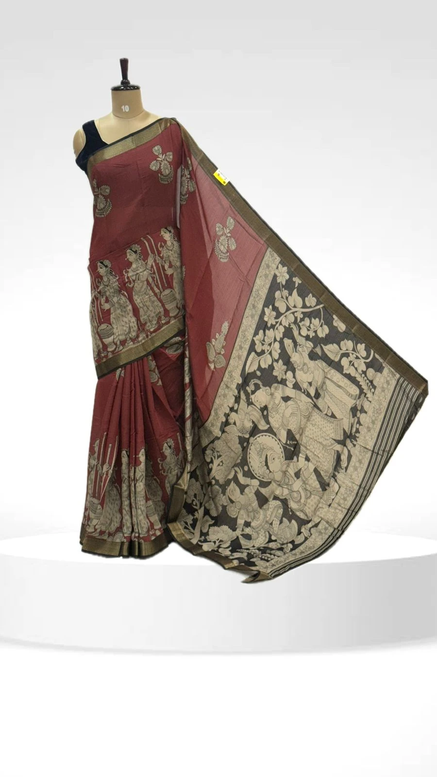 Colour :- Elegant Red Kalamkari Silk Saree with Traditional Mythological Motifs