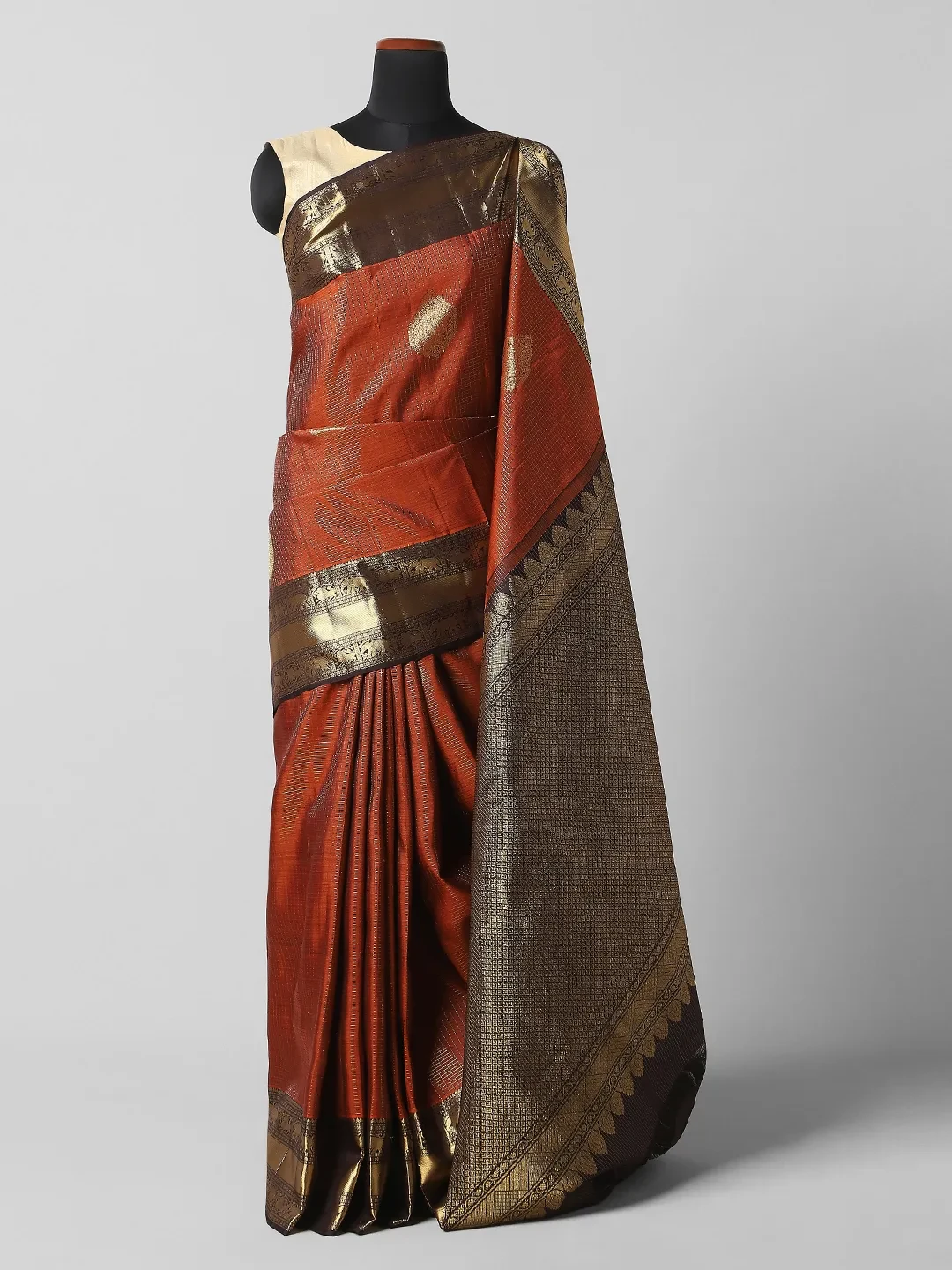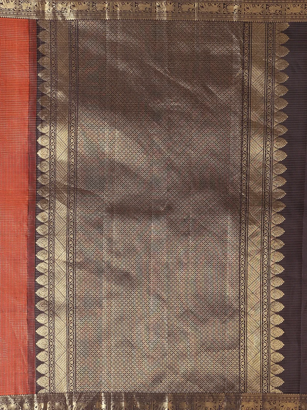 Kanchevaram 1Gm Gold saree -Reddish Orange Colour QA254668