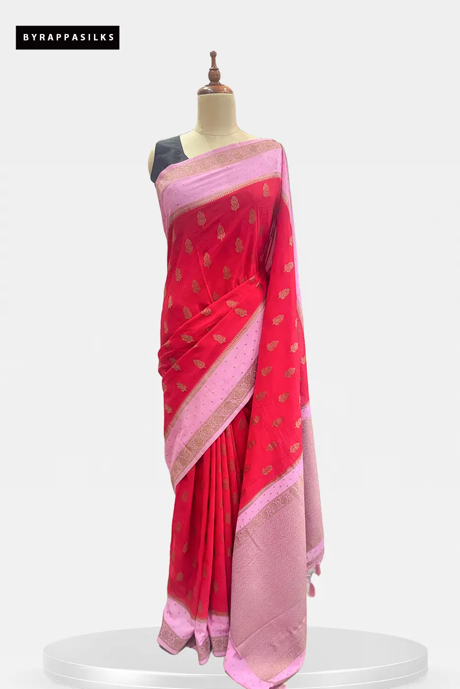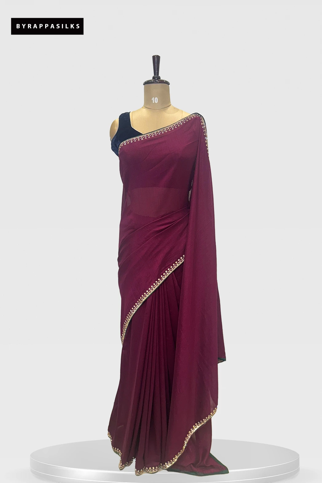 Khaddhi Georgette Saree Orang & Wine-Purple Border₹3650₹3995