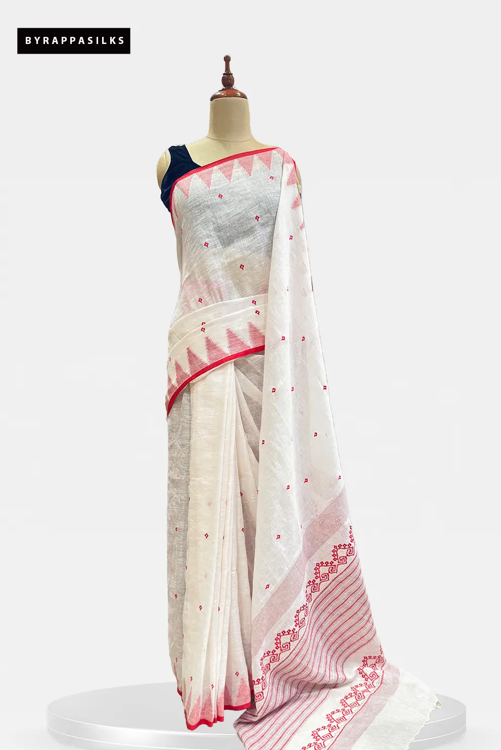 Linen Saree With White & Red Temple Border₹5203₹5695