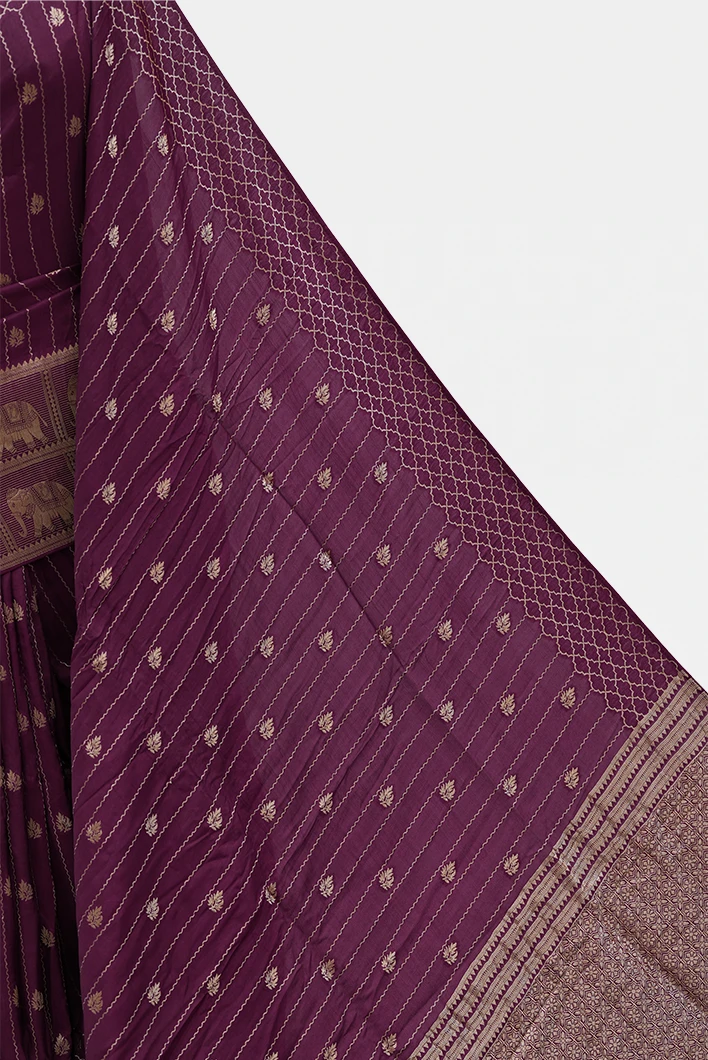 Maroon Banarasi Silk Saree with Golden Zari Border QS253420