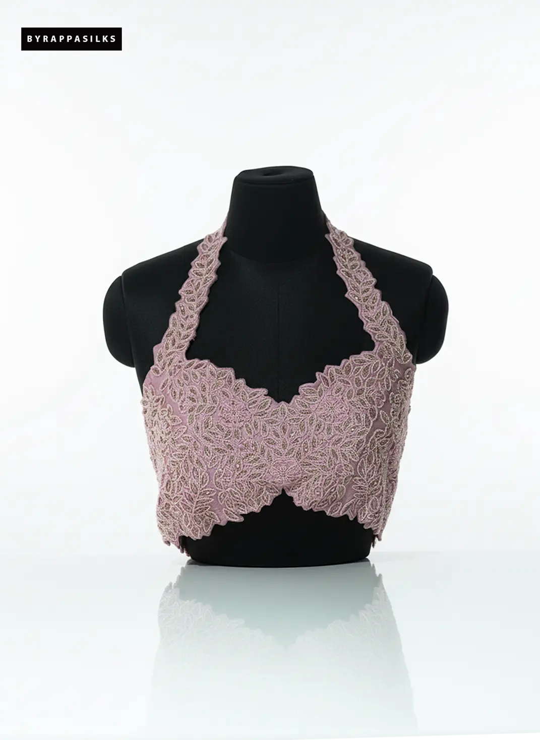 Mauve Embroidered Halter Neck Designer Blouse With Scalloped Hem₹7304₹7995