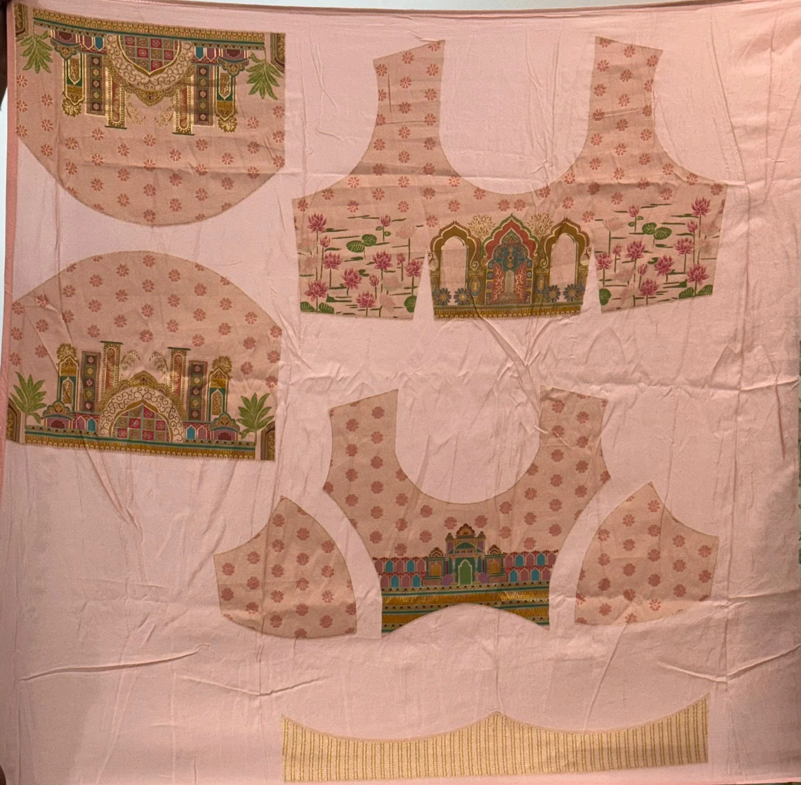 Munga Silk Light Blue & Pink with Village Theme QS236350