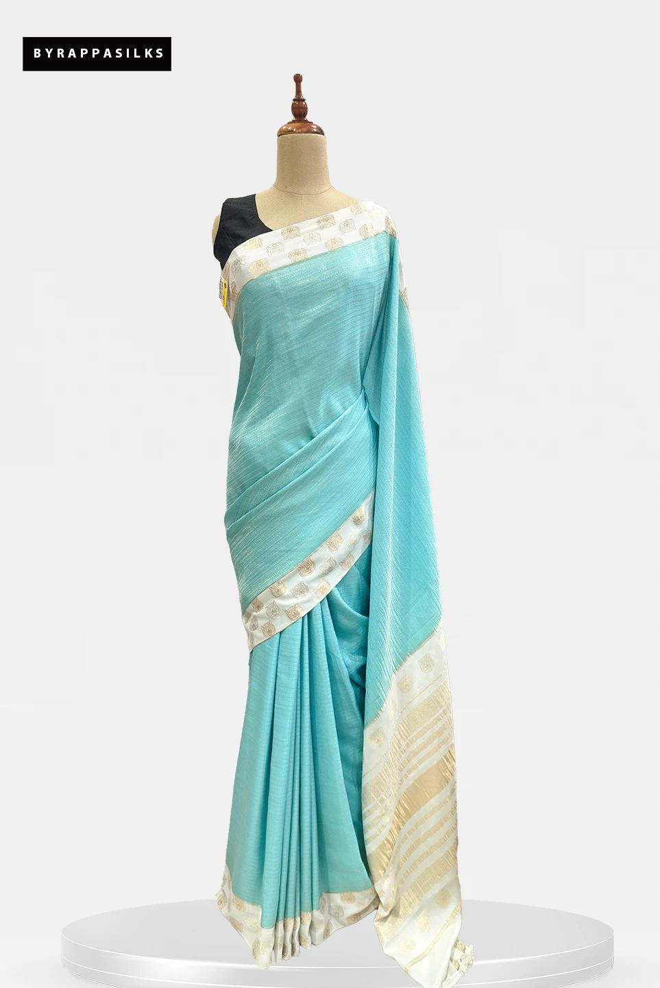 Colour :- Teal Blue Colour Pure Mysore Silk Crape Saree