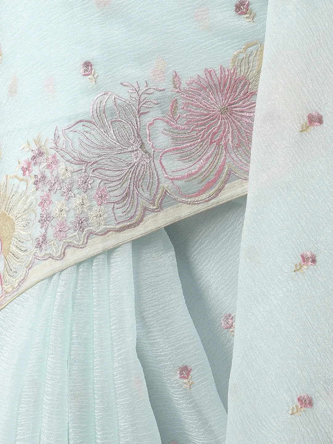 Organza Tissue Saree -Soft Blue Colour QA255137