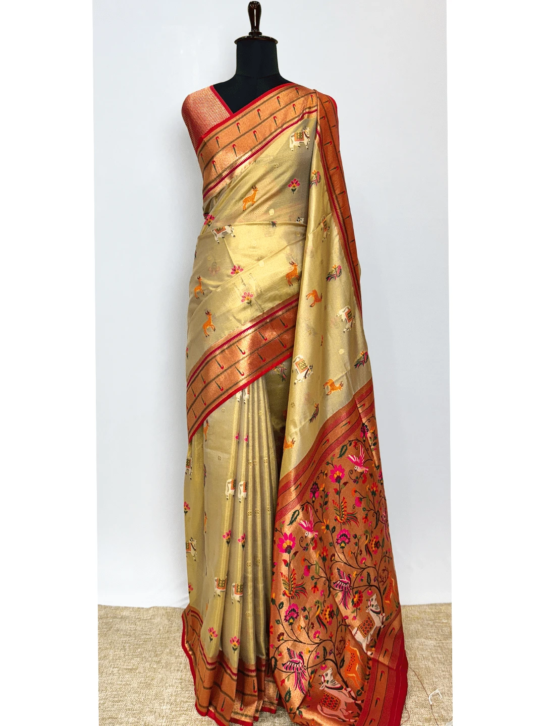 Pashmina Printed Banarasi Crape saree - Cream Colour - QS210543