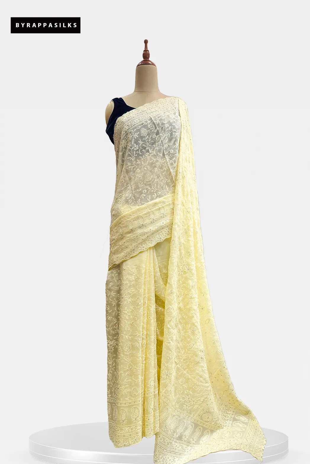 Pure Organza Chikankari Floral Embroidery Lemon Yellow₹9131₹9995