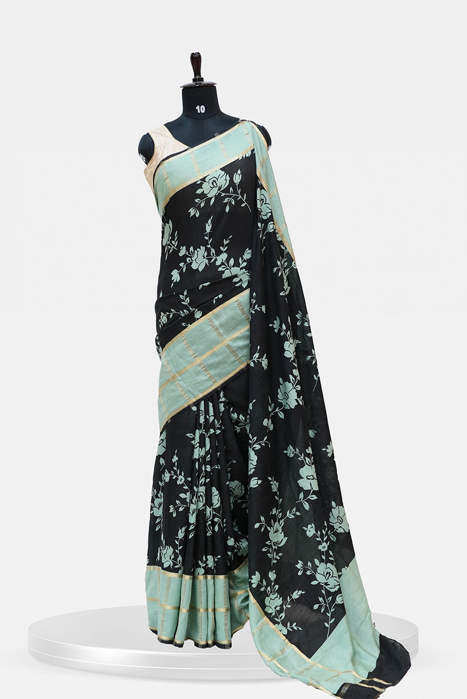 Pure Tussar Saree With Meenakari Work Black Colour QS279691