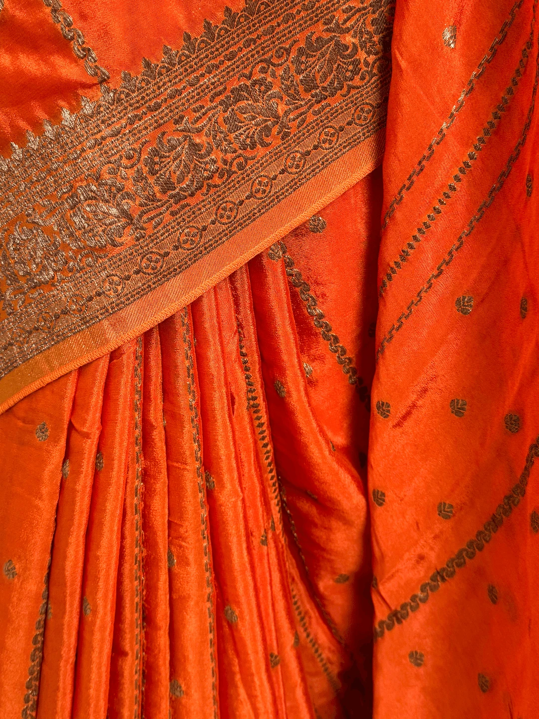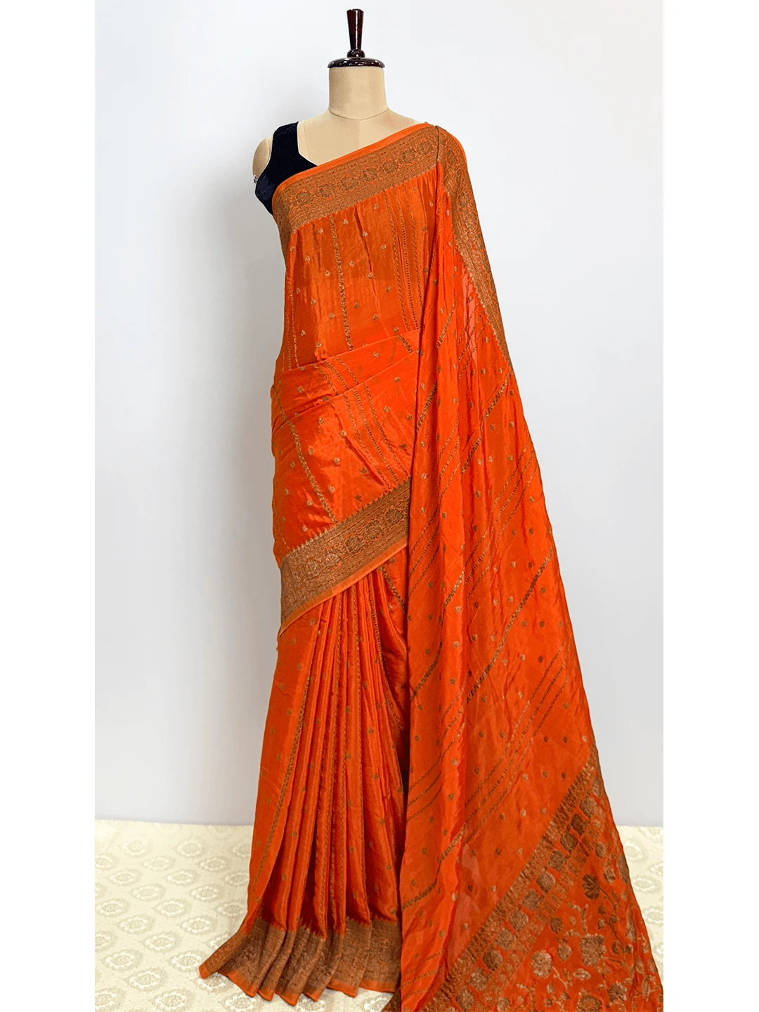 Pure Viscose Banarasi Crape Saree - Orange Colour - QW201263