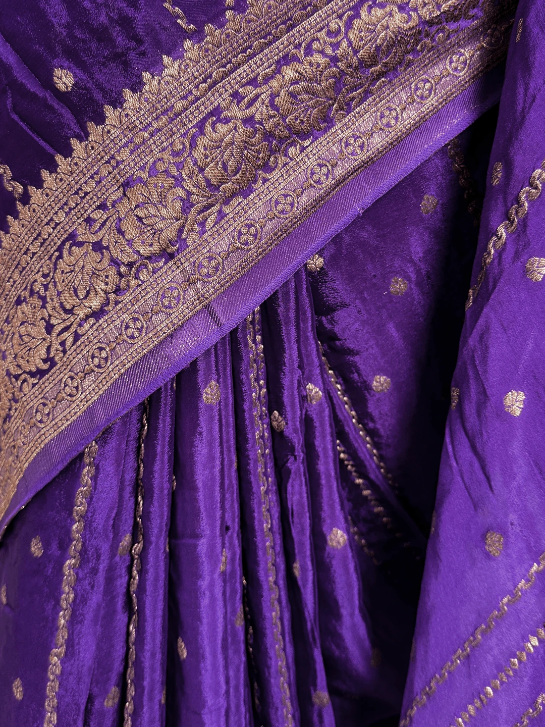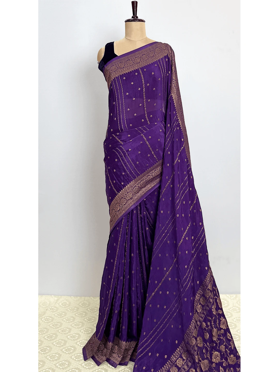 Pure Viscose Banarasi Crape Saree - Purple Colour - QW201261