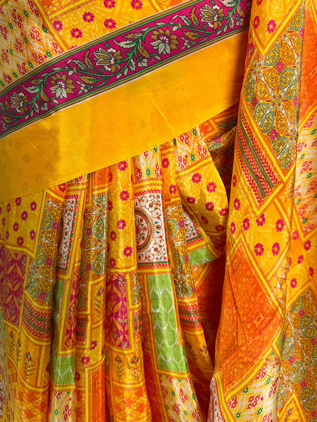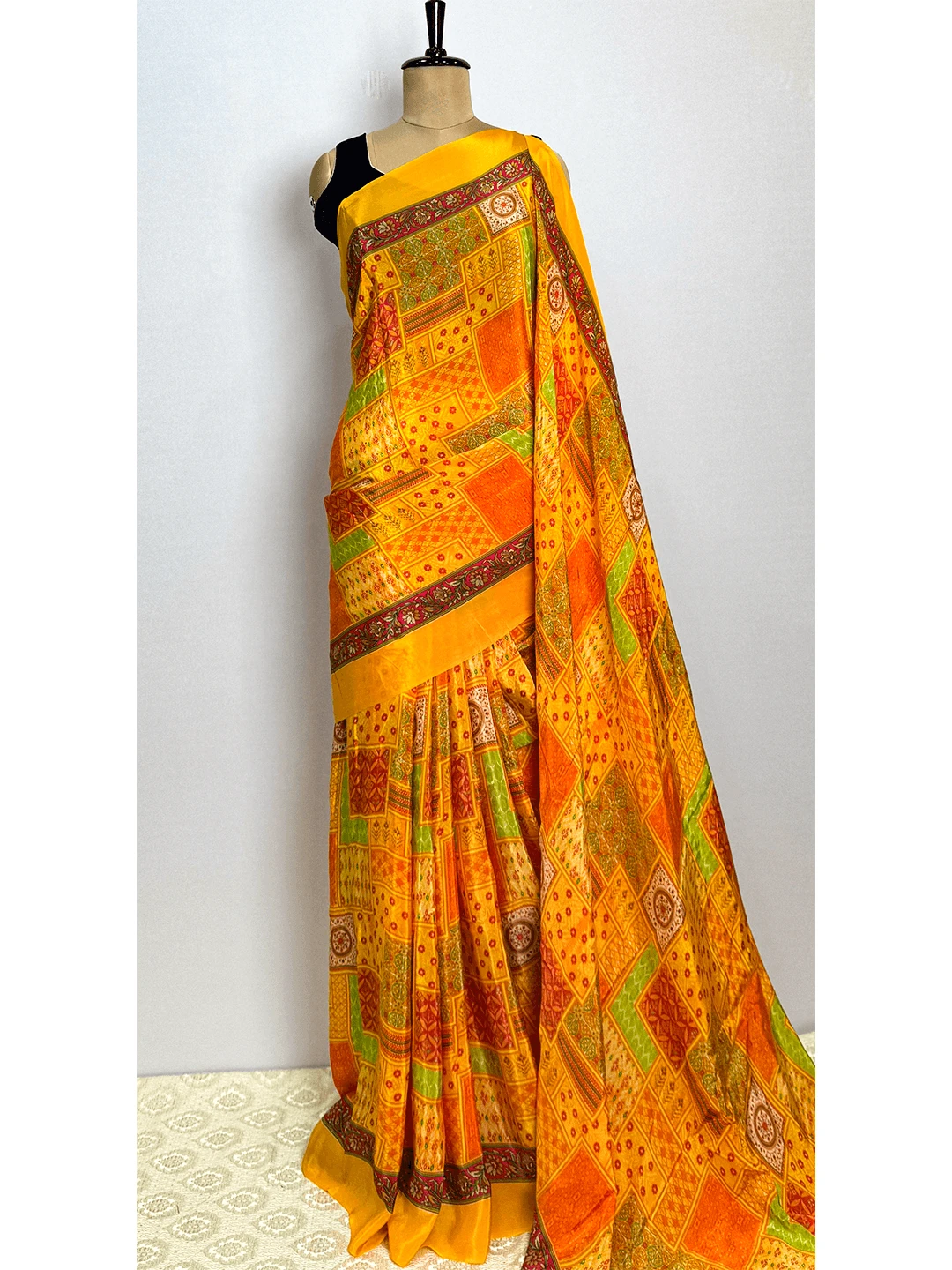 Satin Printed (Aditya Birla Fabric) - Yellow Colour - QS213567
