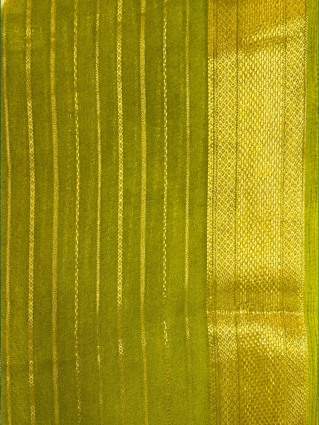 Semi-Crape Stripes & Printed Saree - Light Green Colour - QS217955