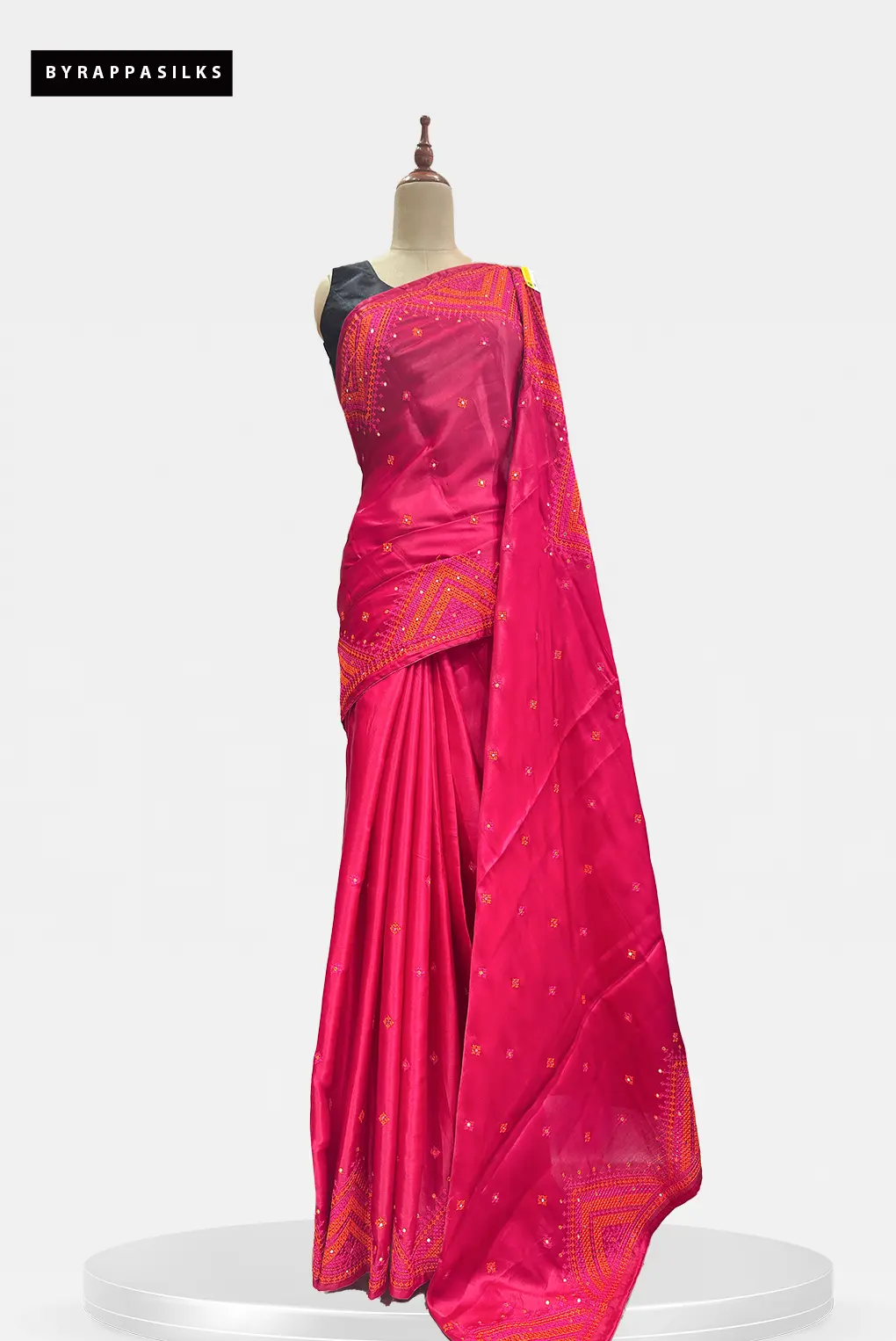 Semi Tussar Saree Kutch Work Border Rani Pink