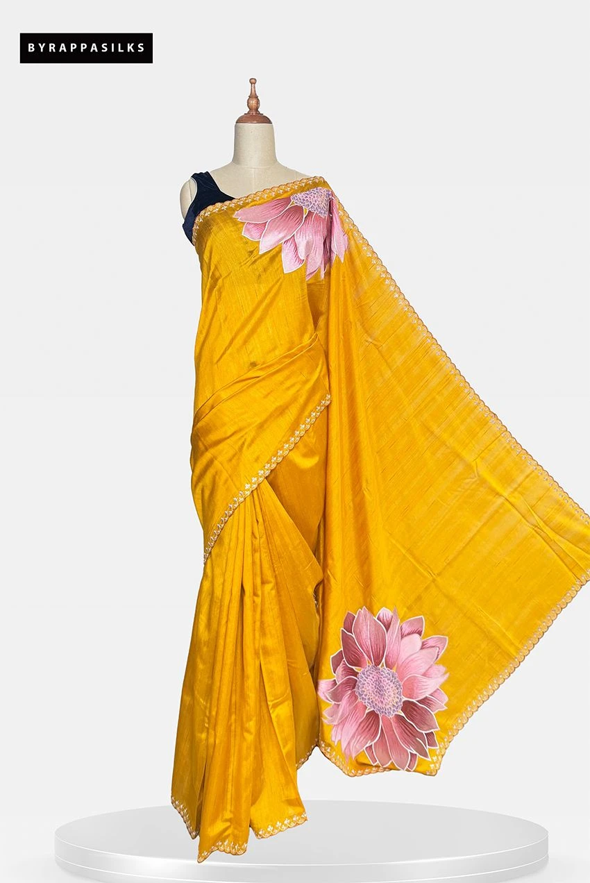 Semi Tussar Saree With Lotus Print Yellow Colour₹3465₹3795