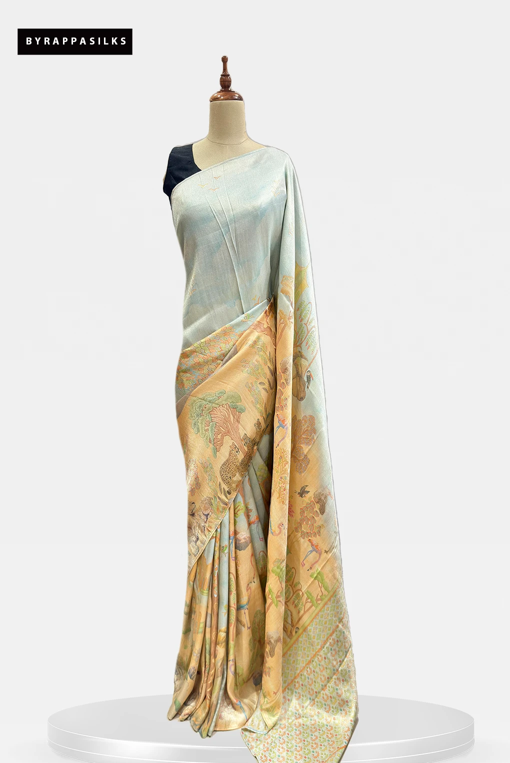 Vantara Saree Powder Blue - Peach Forest & Wildlife print QS288205